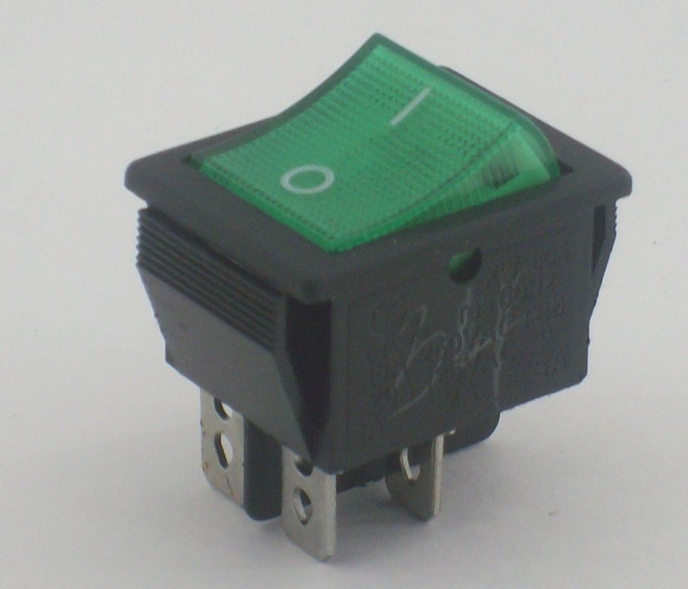 Выключатель клавишный зеленый 16А с фиксацией с подсветкой