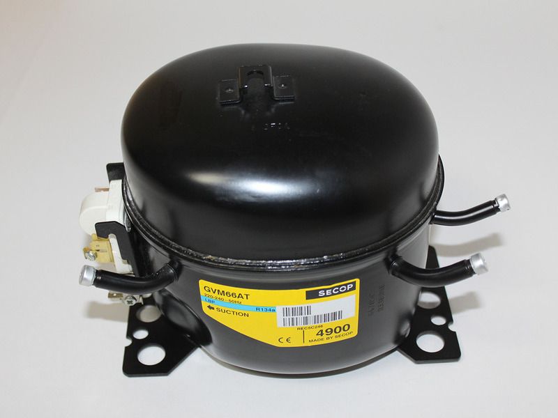 Надежный, высокопроизводительный компрессор Secop GVY75AN имеет герметичное исполнение. Асинхронный двигатель переменного тока защищен автоматическими датчиками перегрузок. Происходит отключение при критическом нарастании температур или предельных вращающих моментов. После снижения критических нагрузок происходит перезапуск компрессора. Обмотка двигателя защищена изоляционной эмалью из синтетических смол от пробоев при возникновении теплового удара. Высокие расчетные пределы нагрузок обеспечивают надежную эксплуатацию компрессора длительное время. Пусковое реле: ZA6H, сопротивление обмотки пусковой [Ом]: 13,00 Ohm, сопротивление обмотки рабочей [Ом]: 14,80 Ohm.